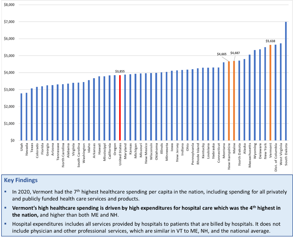 Vermont Has the Fourth Highest Per Capita Spending on Hospitals in the Nation